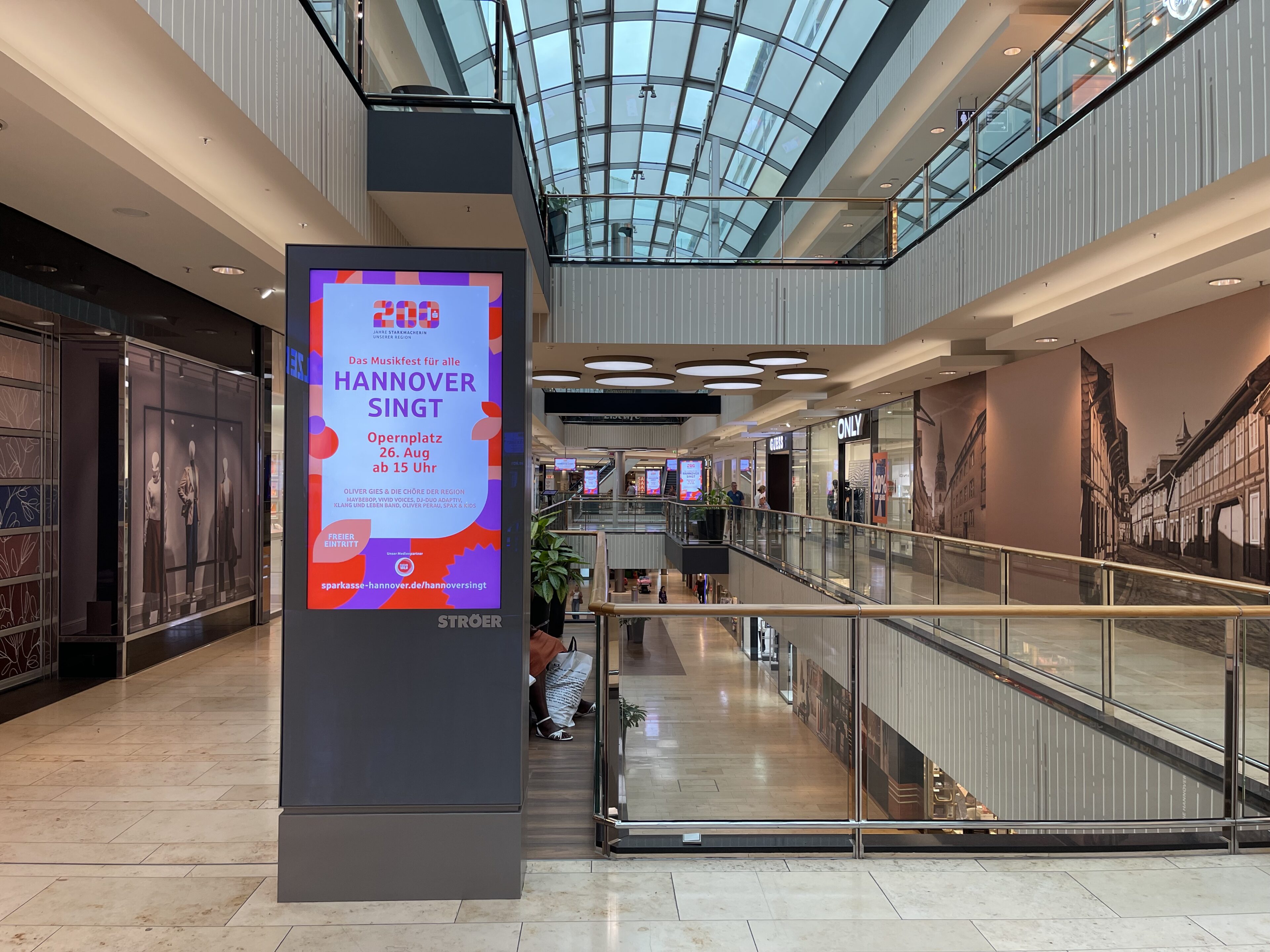 Bei DOOH wurden digitale Screens in Hannover am Bahnhof, in der City, Roadside, auf den Infoscreens in U-Bahnhöfen und im Einkaufszentrum bespielt. In Wartezimmern von Arztpraxen konnten Personen ebenso mit unserer Hilfe über die Veranstaltung informiert werden.