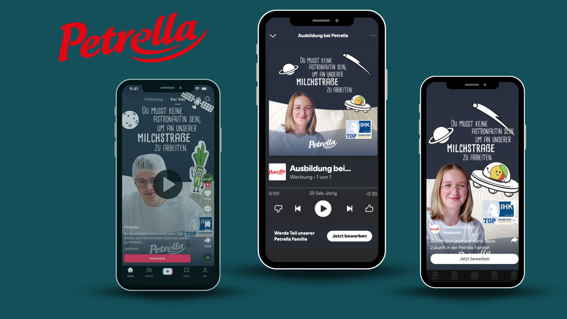 Wir entwickelten eine kanalübergreifende Media-Strategie, die das Standortprofil von Petrella konsistent sichtbar macht und die die junge Zielgruppe entlang relevanter Touchpoints erreicht. Dafür analysierten wir zunächst das regionale Umfeld sowie digitale Nutzungssituationen, um die wirksamsten Kanäle und Kontaktmomente zu definieren.